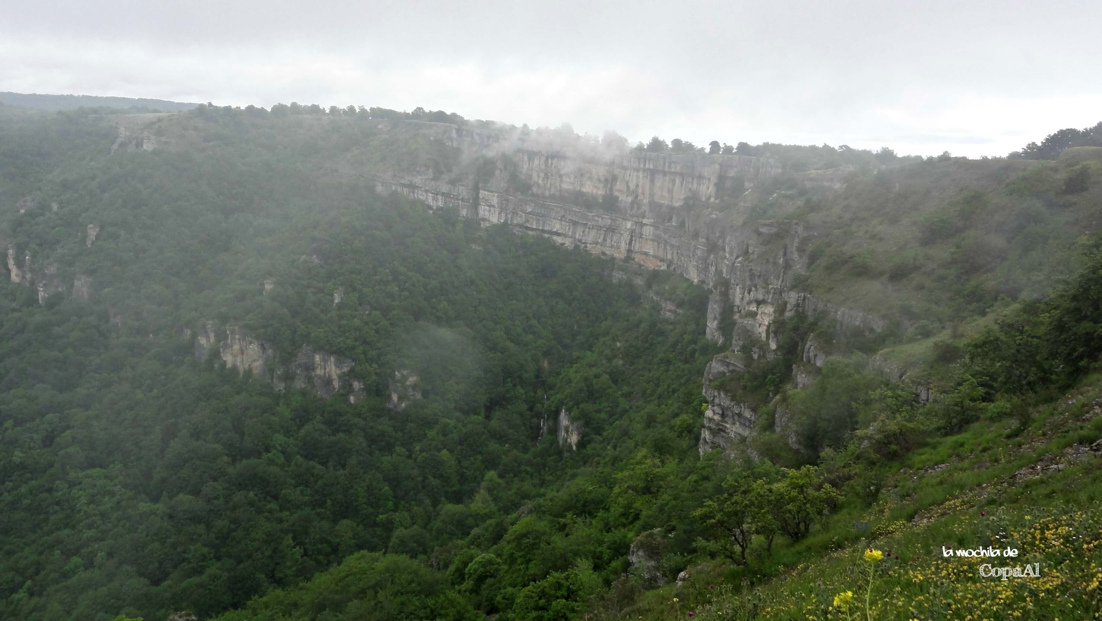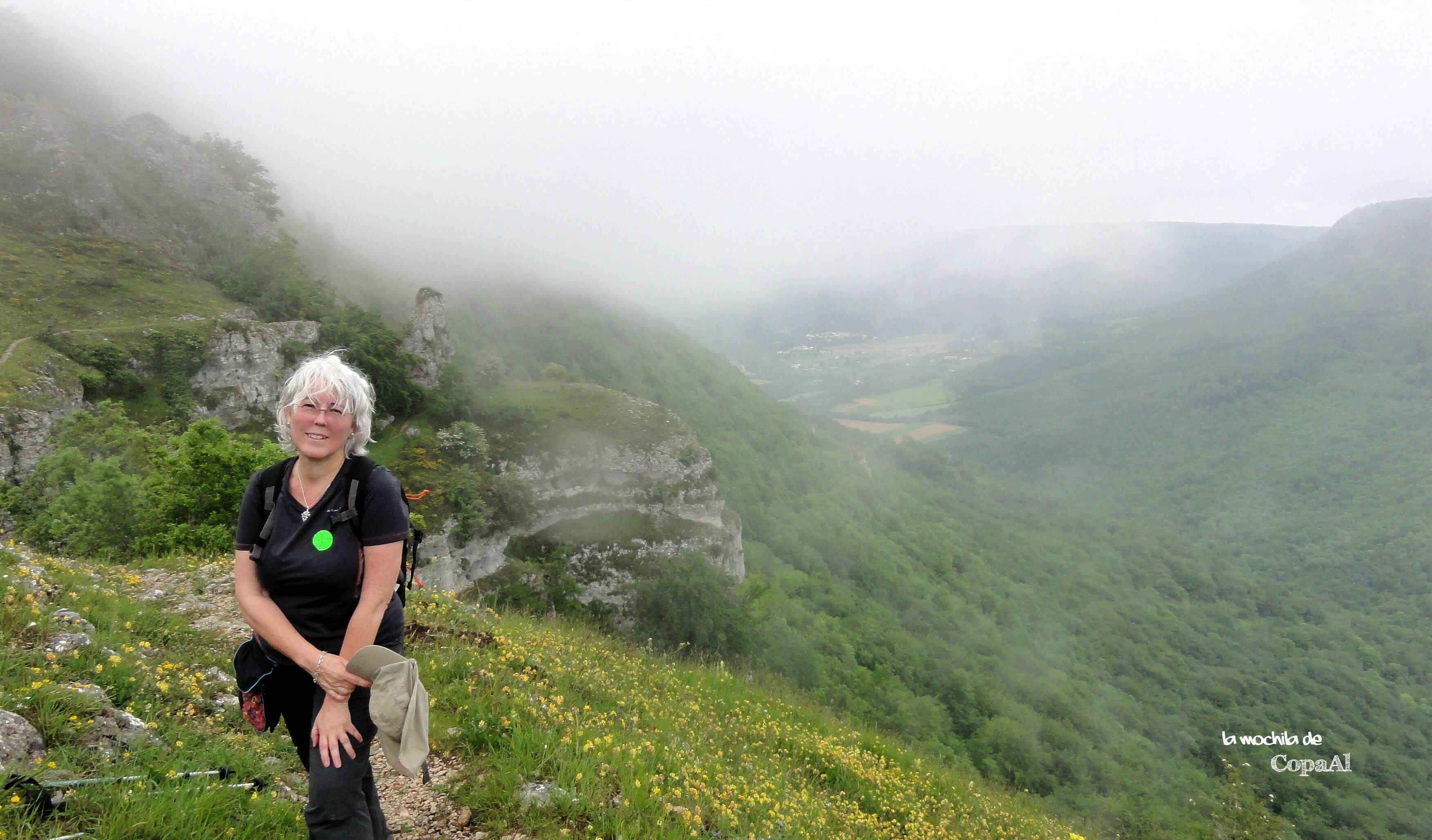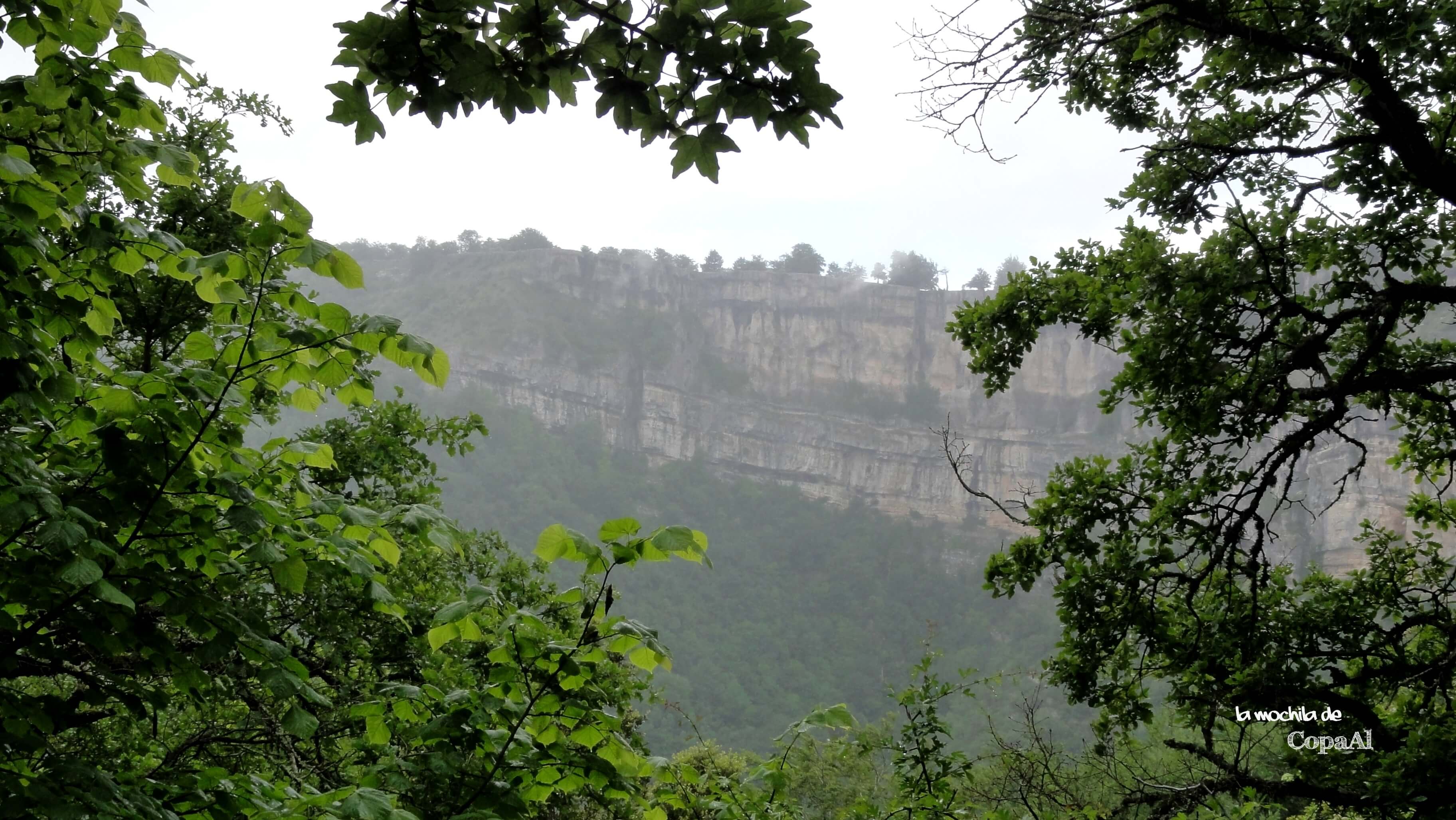 La mañana se nos tornó nublada, acechando sobre nuestras cabezas nubes que al final decidieron dejar caer su lluvia en nuestro camino de ascensión al Balcón de Pilatos. Según ascendíamos por el sendero, rodeado de frondosos bosques de hayas, robles y encinas, paraba para contemplar como la aldea se iban quedando a mis espaldas, siendo cada vez más pequeñita y dándome la opción de observar cómo iba tomando forma el valle y cómo se agrandaba el macizo de Urbasa en nuestra ascensión.