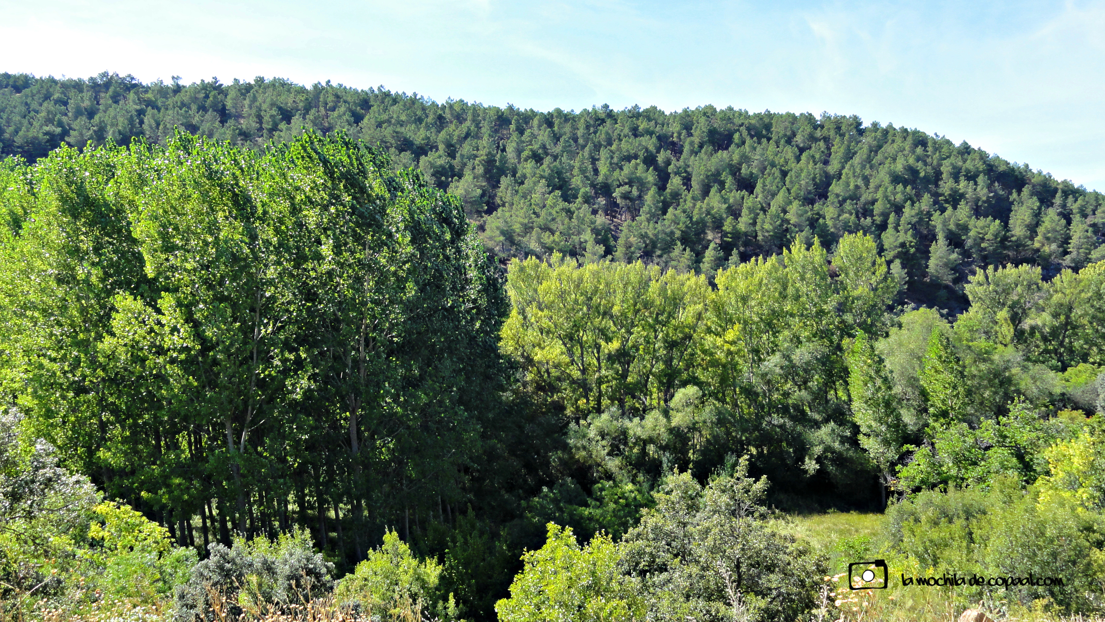 Mientras a mi derecha resaltaba el verdear de las huertas que surgen en el margen del río, nogales, ciruelos, manzanos…..