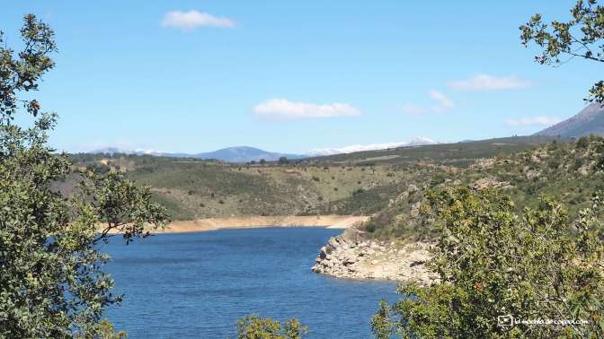 El embalse te magnetiza y te atraen ante su inmensidad, mientras mis ojos contemplan en la lejanía las cumbres todavía nevadas de la Sierra Norte, que contrastan contra el perfil del verde follaje que nos rodea.