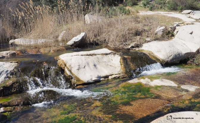 Mientras seguimos disfrutando del recorrido, encontramos canalizaciones sobre las que nuestras botas dejan sus huellas, o formas graníticas que emergen del agua. Siempre hay algo que descubrir, como saborear nuestras viandas mientras contemplamos uno de los acueductos, para terminar jugando con el agua a la sombra de sus arcos.