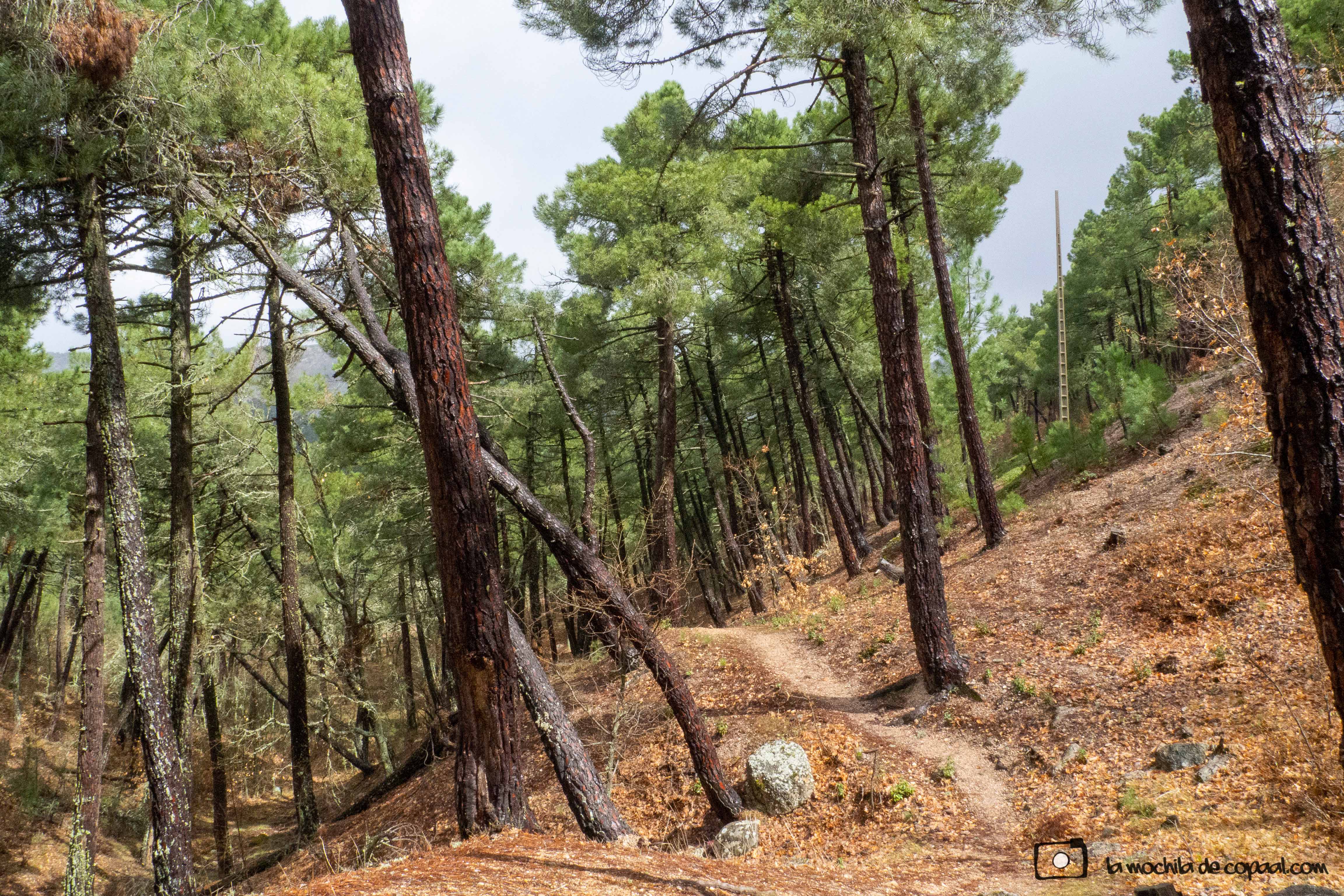 La lluvia, que durante todo el día paseaba a ratitos sobre nuestras cabezas, decidió durante parte del siguiente tramo que se inicia en el Monumento a los Forestales, descargar durante unos minutos su torrente de agua, formando una cortina que disipaba el barranco, que poco a poco dejábamos atrás.