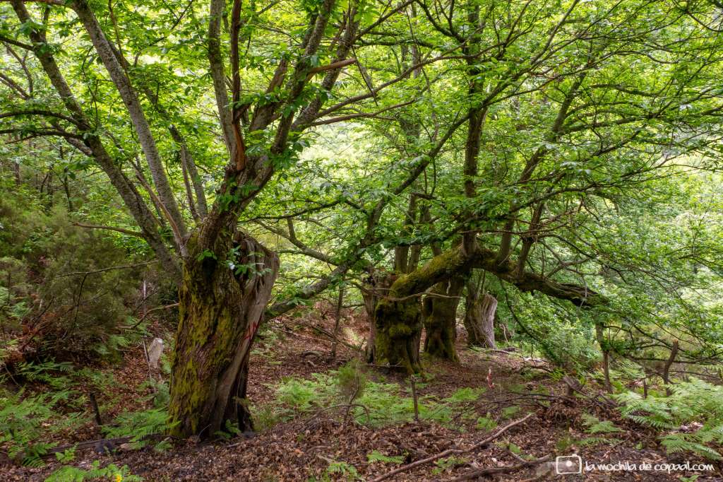 Mi primera sorpresa, una de tantas en este sendero, fue la vista de unos inmensos castaños centenarios que al pie del camino vigilaban como gigantes guardianes del bosque.