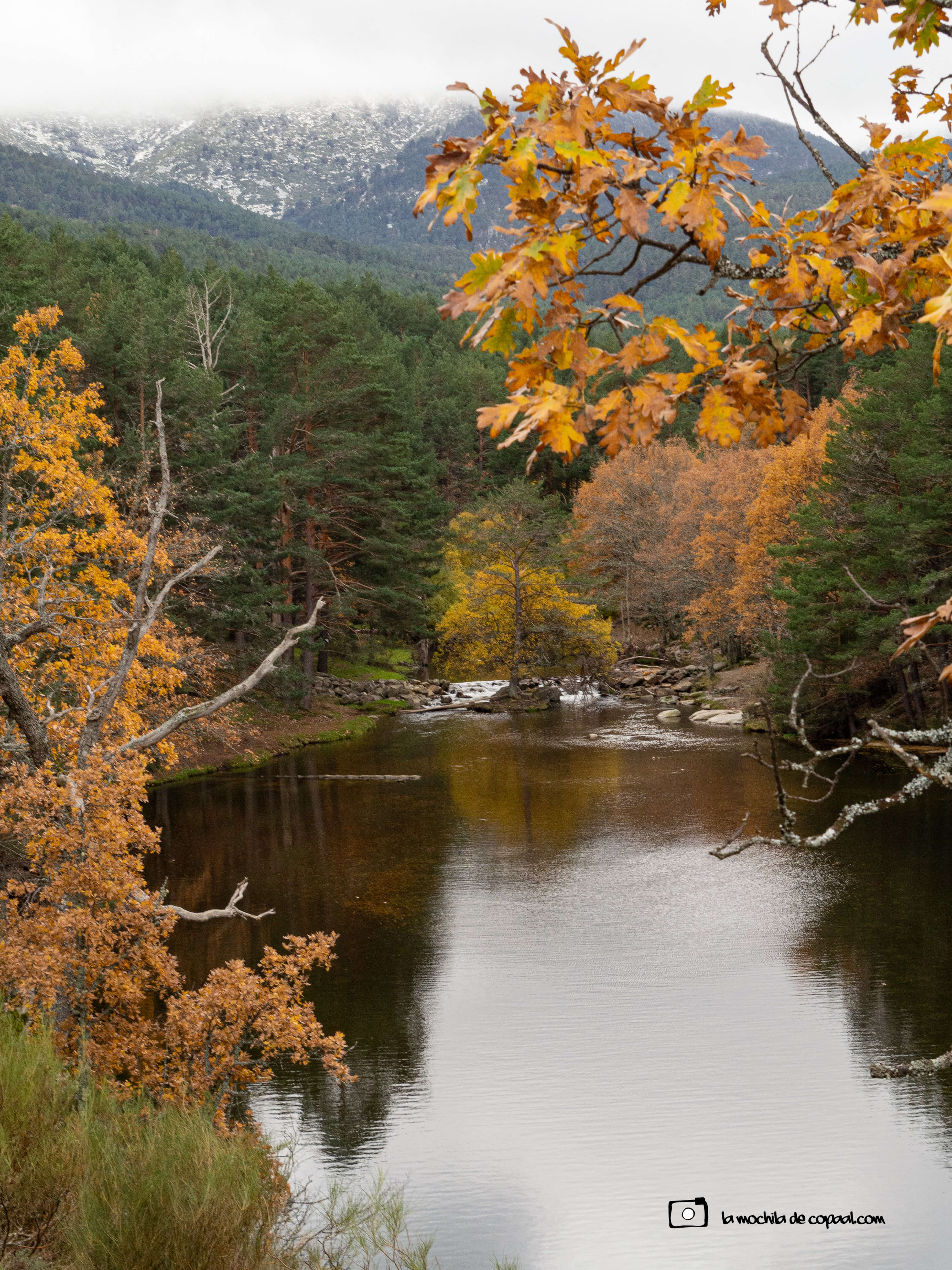 El frío iba notándose en la umbría del bosque, pero no me impidió plasmar en fotografía esa bella cascada de agua que el embalse del Pradillo me bridó al regreso, como colofón a un día especial de senderismo.