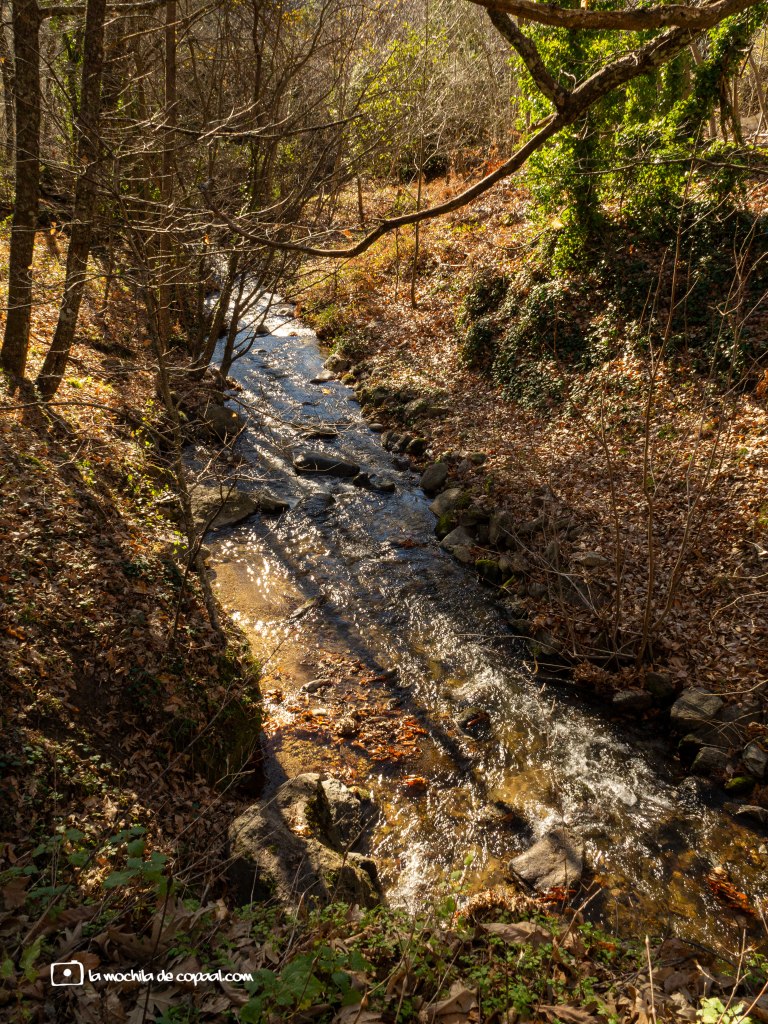 A mis pies, observo los reflejos en el agua calmada, destellos de luces en una mañana de invierno soleado y dando por finalizada esta ruta por bosques de castaños.