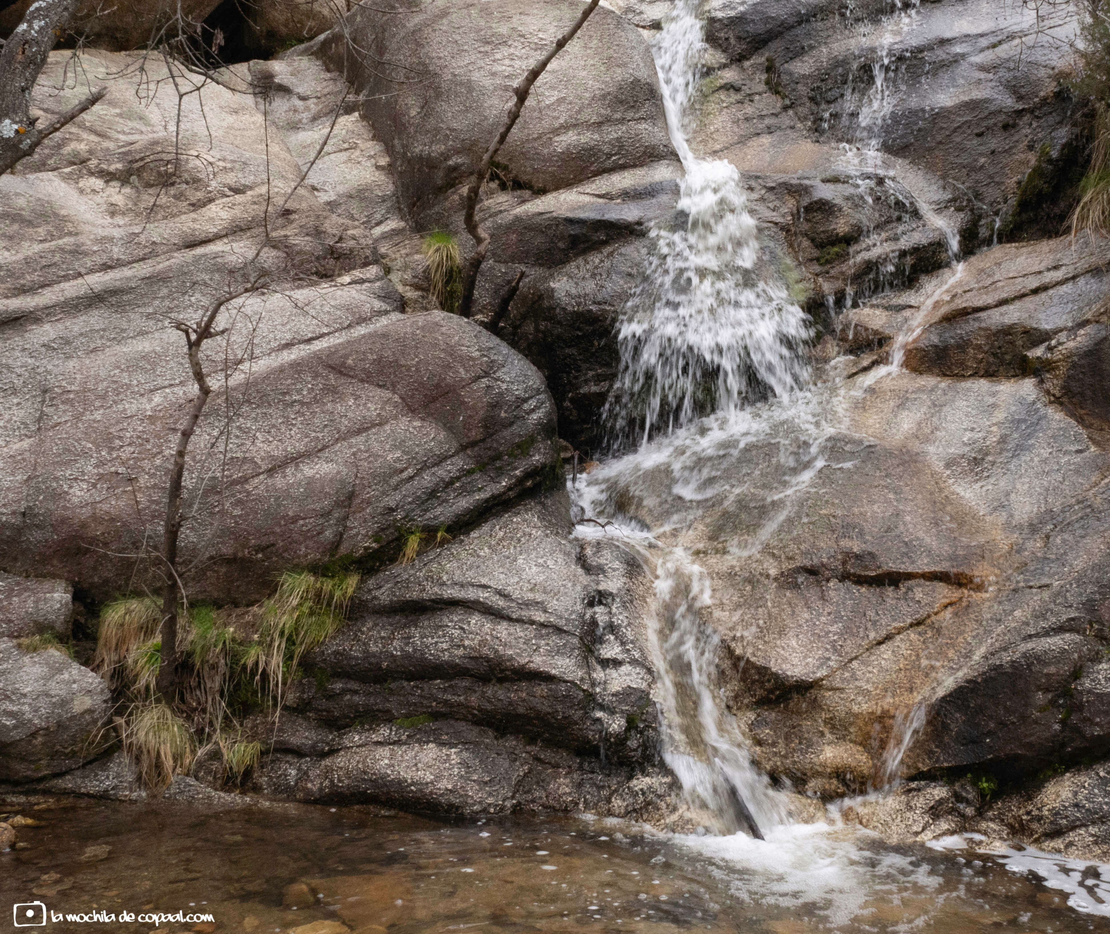 El sendero me guía hasta el arroyo Peña Herrera, este se transforma en una pequeña cascada llamada la Cascada del Covacho, convirtiéndose en una parada obligatoria en esta ruta, siempre que el arroyo discurra con caudal, menos en tiempo de estío.