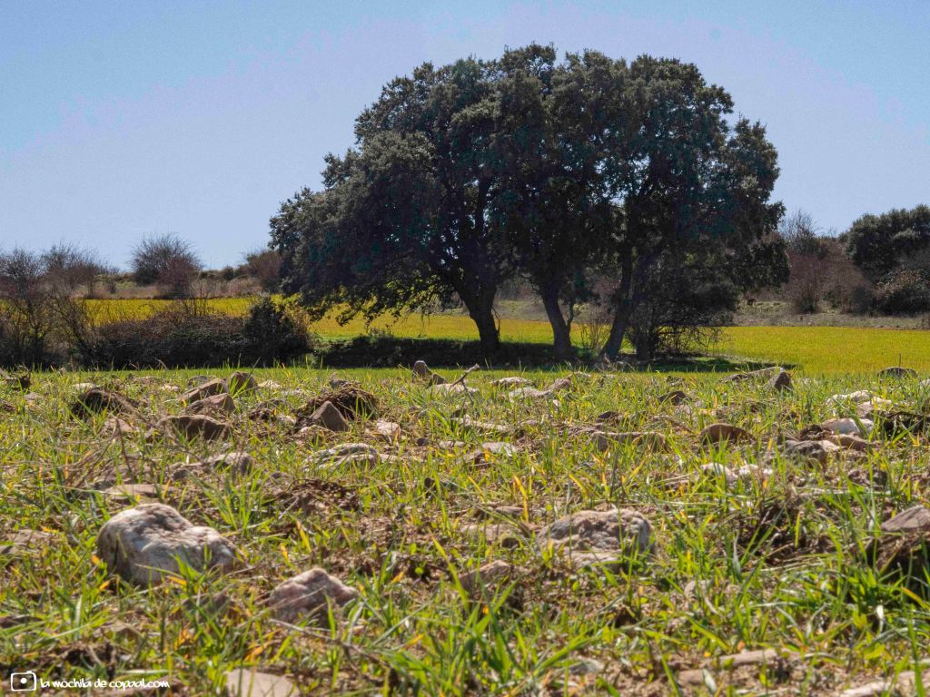 Una vez visitado el primer pueblo rojo, nos dirigimos hacía El Negrero por el camino de tierra, junto a campos verdes salpicados por algúna encina, eso me hace pensar en la belleza que nos ofrece la naturaleza, mientras me giro para poder contemplar las cumbres cubiertas de blanco.